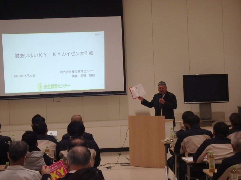 交通安全、労働災害状況、安全意識向上(KY)など、多岐にわたる内容についてご指導いただき、改めて「人命尊重」を第一とする姿勢の重要性を認識する機会となりました。